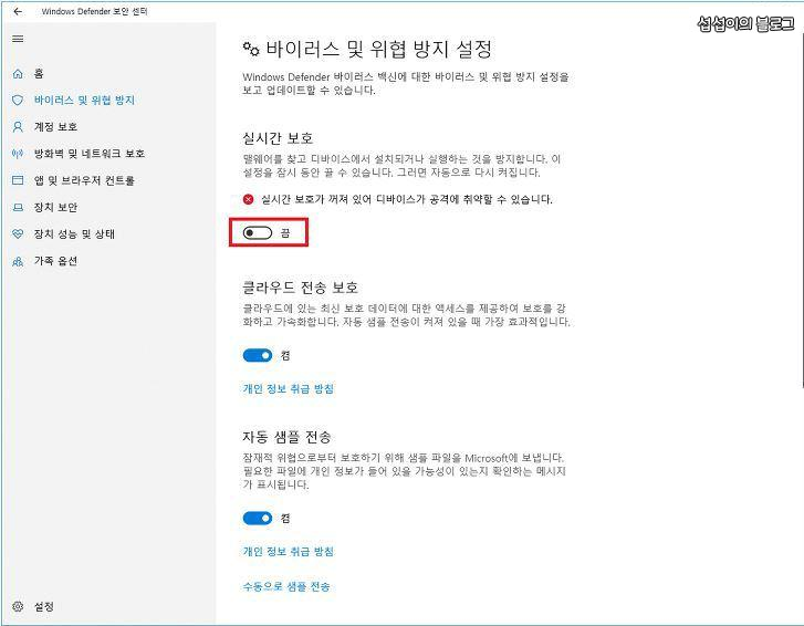 실시간 검사를 종료해주세요.( 컴퓨터에 해로운 바이러스가 아니니 안심해주세요.)