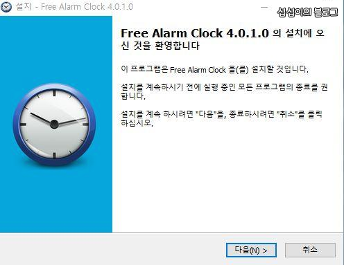 다음을 눌러 컴퓨터 알람시계 (Free Alarm Clock)설치를 시작해주세요.