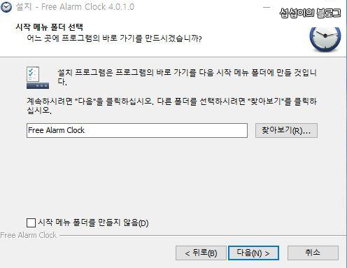 시작메뉴에 Free Alarm Clock으로 메뉴가 추가됩니다.! 다음을 눌러주세요