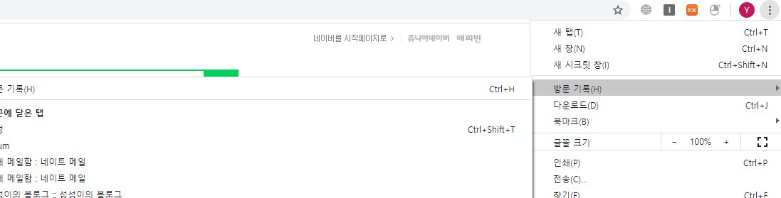 클릭을 하시면 이렇게 방문 기록을 전부 삭제할 수 있습니다.