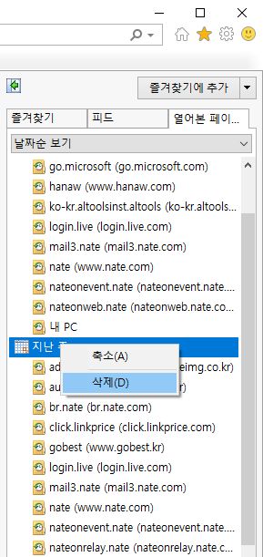검색기록에 보시면 삭제(D)라는 선택 메뉴가 보입니다.