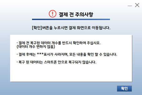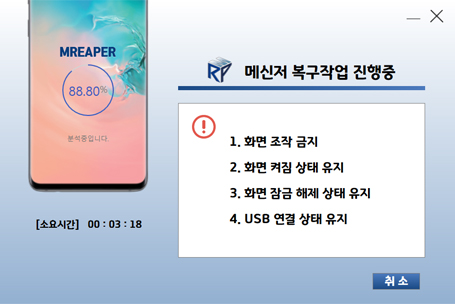 본 프로그램은 사용자의 컴퓨터 환경, 인터넷 속도에 따른 복구 속도의 차이가 발생할 수 있습니다.